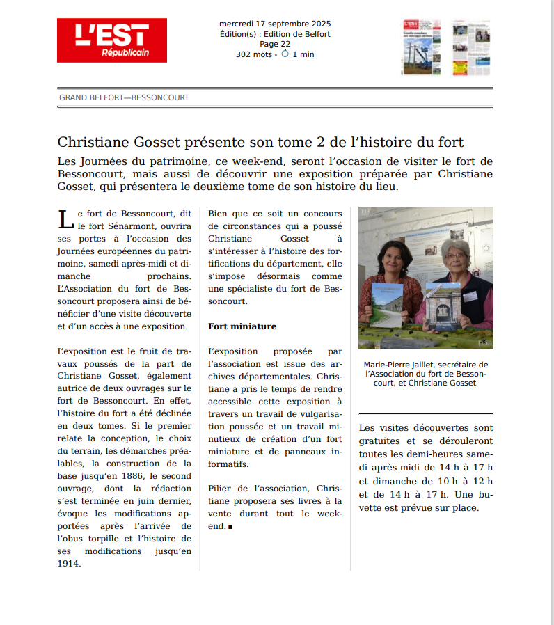 La ceinture fortifiée réalisée dans le Nord Franche-Comté à la fin du 19ème siècle par le Général Séré de Rivières est un marqueur fort du