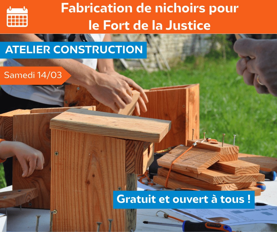 Ce samedi 14 mars, venez construire des nichoirs pour les jardins du fort de la Justice ! Plusieurs espèces d’oiseaux seront visées : l’occasion d’en savoir plus sur les différents nichoirs pour chaque espèce.