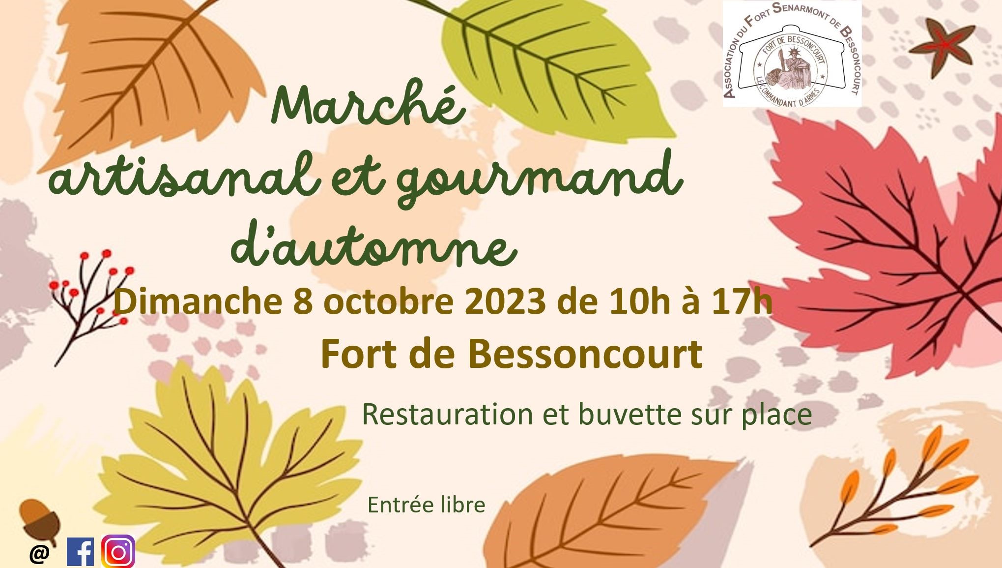 Marché du terroir d’automne Date 08 Oct 2023 Expiré ! Heure 10h00 - 17h00 Lieu Fort Sénarmont (Bessoncourt) Bessoncourt Catégorie Marché Partagez cet événement
